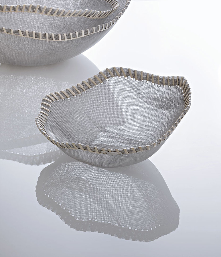 Необычное глубокое блюдо от братьев Кампана, выполненное из стальной сетки и отделанное по краям натуральной фиброй.