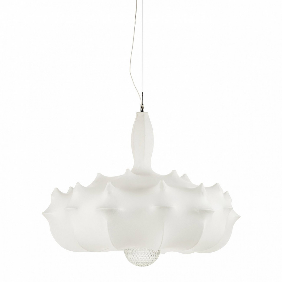 Роскошный подвесной светильник Zeppelin от одного из самых харизматичных и модных дизайнеров современности Марселя Вандерса с первого взгляда поражает своим необыкновенным обликом. Он вызывает восхищение благодаря своей совершенно нетипичной форме. Этот светильник выглядит так, словно он заключен в белый кокон, сотканный чудесными насекомыми. На самом же деле его создатель по уникальной технологии наматывает на стальное основание прибора липкие полимерные нити.
